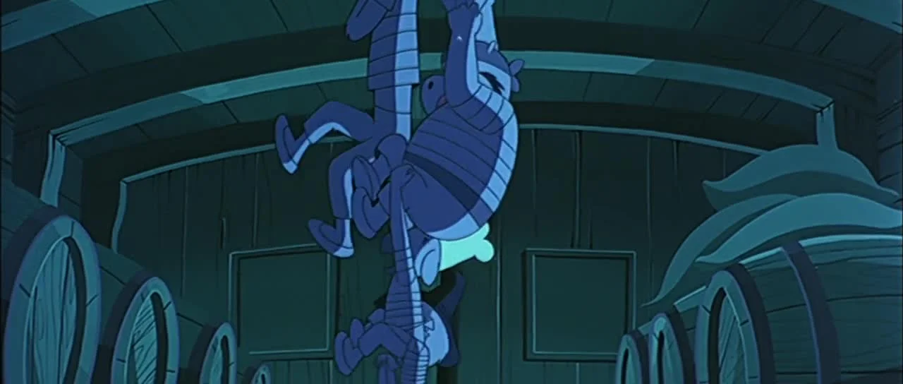 К мальчику Джиму попадает карта, на которой обозначен остров с несметными сокровищами капитана Флинта. Он вместе со своим верным другом-мышонком отправляется в плавание, но смельчаков настигают пираты. После неравной схватки друзья терпят поражение, и морские разбойники продают их работорговцу.
