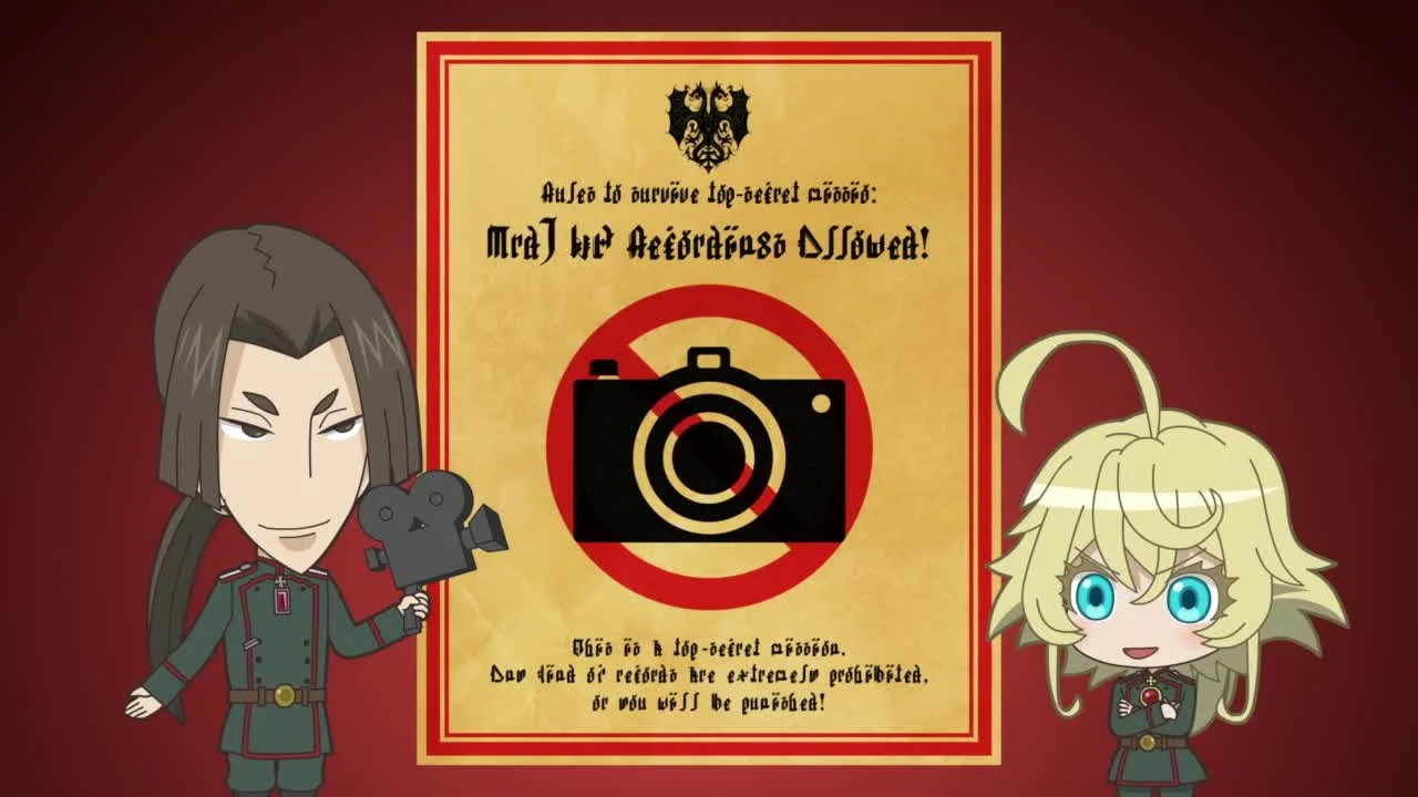 Выполненный в тиби-стиле ролик, который транслировали перед показом фильма «Военная хроника маленькой девочки. Фильм» в кинотеатрах. В нём напоминают о правилах поведения во время сеанса. Позднее был включен в Blu-ray и DVD.