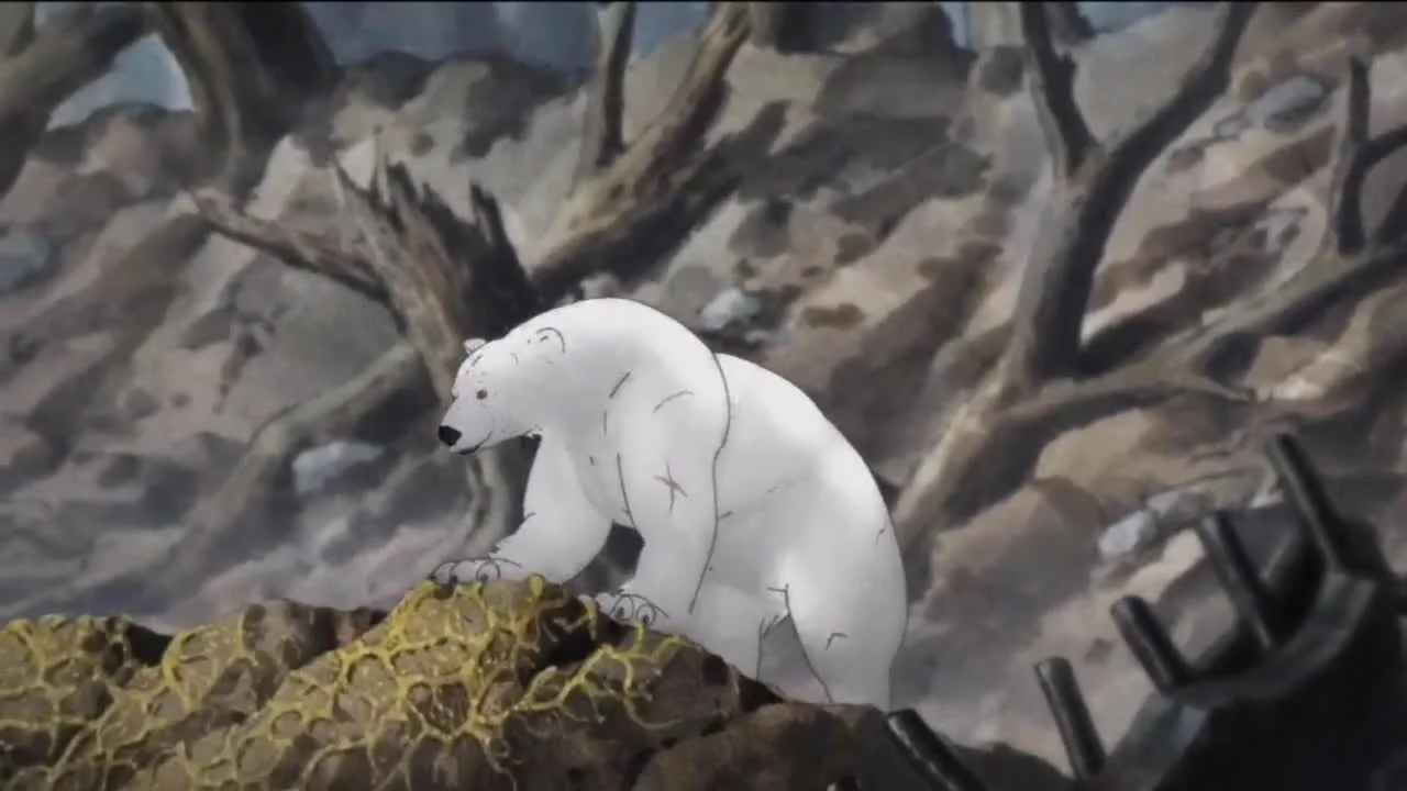 Эта короткая история рассказывает о сражении между чудовищем, которое убивает членов императорской семьи, и загадочным белым медведем, вставшим на их защиту.Данное аниме является частью проекта «Хрупкий мир» (Short Peace).