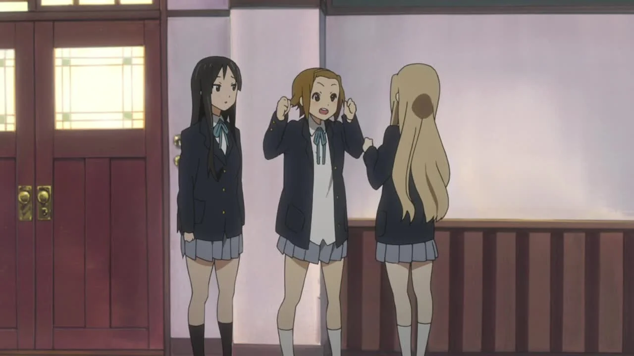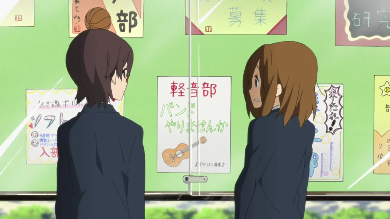 Юи Хирасава — молодая и беззаботная девушка, только-только поступившая в старшую школу. В первый же день учёбы она замечает рекламный плакат «клуба лёгкой музыки» и, загоревшись желанием вступить туда, отправляется записываться в участники.Она приходит в комнату клуба, где её тепло встречают находящиеся там девушки: Рицу Тайнака, Мио Акияма и Цумуги Котобуки. Когда выясняется, что Юи не умеет играть ни на одном музыкальном инструменте, её, несмотря на это, убеждают вступить хотя бы для того, чтобы предотвратить роспуск клуба. А после прослушивания небольшой композиции интерес у Юи разгорается лишь сильнее, и она решает научиться играть на гитаре.Пролетают неделя за неделей; наряду со школьными занятиями и домашней работой Юи учится игре на гитаре, попутно сталкиваясь со множеством проблем и с различным успехом решая их — не без помощи новообретённых подруг. Ей ещё далеко до совершенства, а школьный фестиваль всё ближе и ближе... Успеет ли «клуб лёгкой музыки» подготовиться к своему дебютному выступлению?