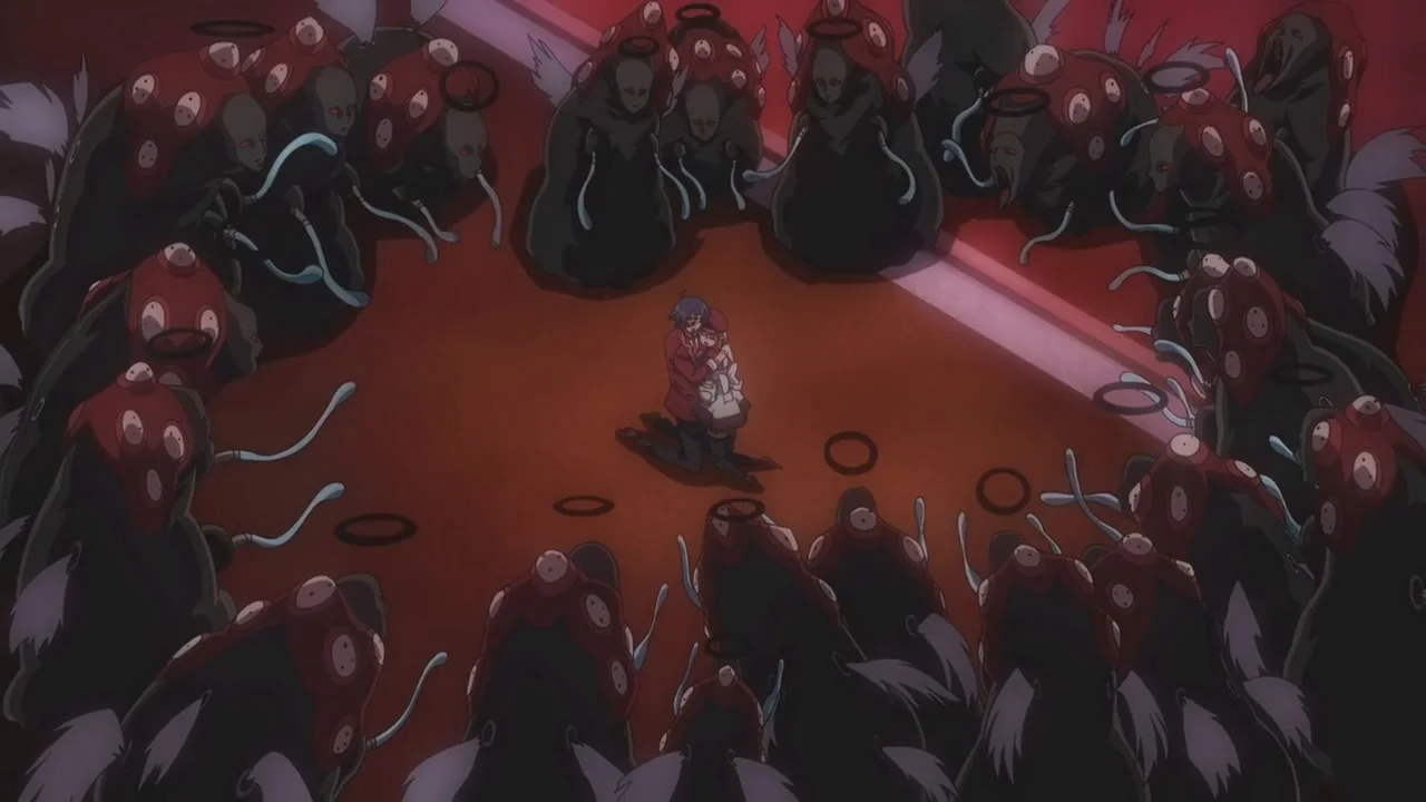 Когда небо становится красным, а луна — чёрной, и монстры начинают бродить по улицам, Какэру Сацуки не понимает, что происходит. Вместе со своей подругой Юкой они пытаются разобраться, как и почему они попали в этот странный мир.Но вскоре «Красная ночь» заканчивается, и Какэру с Юкой убеждают себя, что это был просто кошмар... пока «ночь» не наступает снова, и они не оказываются в опасной ситуации. Они встречают ещё четверых людей в затруднительном положении: мечницу Мисудзу Кусакабэ, Кукури Татибану — странную немую девушку, зловеще похожую на сестру Какэру, которая покончила жизнь самоубийством, Юкико Хирохару — жизнерадостную девушку, чья личность меняется, стоит ей только снять очки, и молодого пирокинетика Такахису Тадзиму.Вшестером они объединяются, чтобы выжить и раскрыть тайну этого мистического мира.